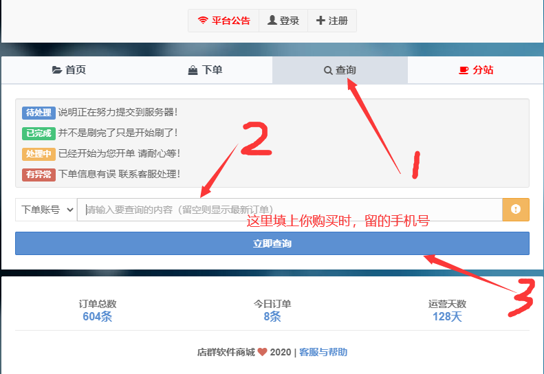 1、首先,购买时,必须要预留您的手机号,才可以下单,后面查询订单就是通过您留的手机号下查询