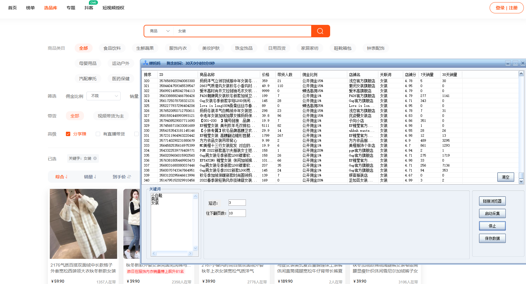 蝉妈妈精选联盟爆款采集,带佣金,不限制采集,实时数据