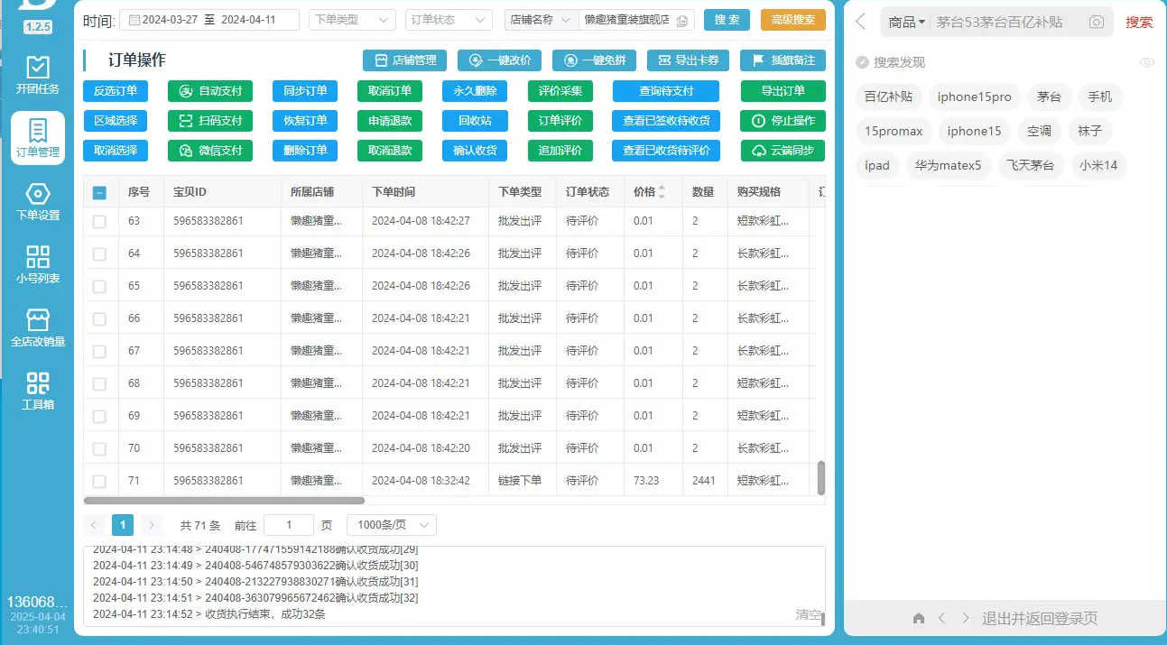 批量出评:这是多多出评大白最核心的功能之一。通过批量出评,商家可以在短时间内为产品积累大量真实评价,提升店铺的信誉和吸引力。批量出评功能支持自定义评论内容和图片,确保评价的真实性和多样性。