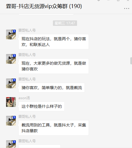 霖哥也实际测试操作了一些店铺,目前抖音小店确实容易出成果,我在霖哥抖店无货源众筹群里就分享了最新的操作思路