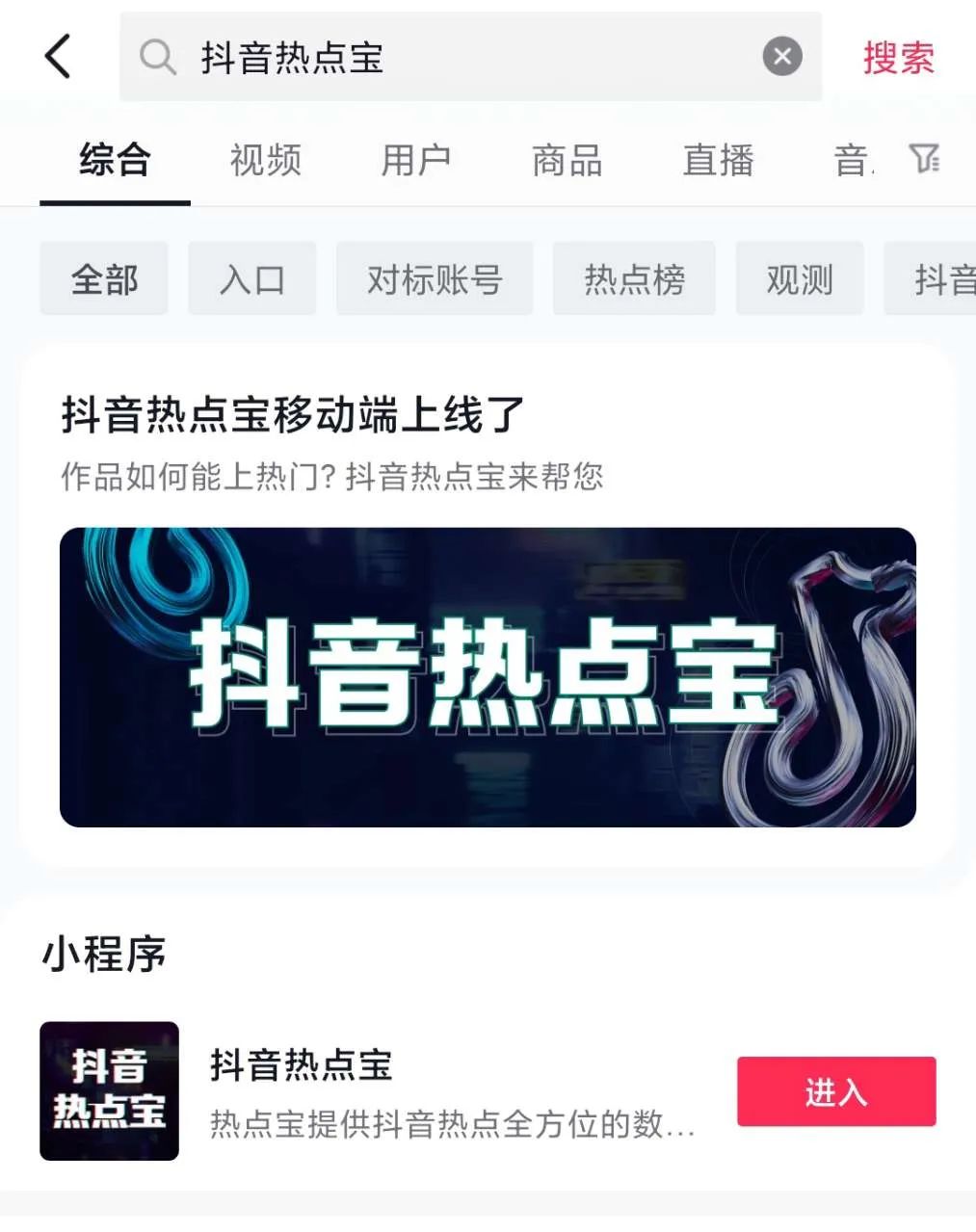 手机端抖音搜索:抖音热点宝 ,点击进入即可。