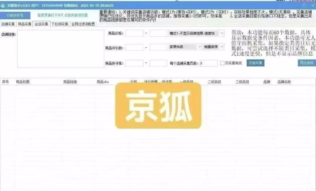 京狐助手的同行整店采集功能给了我一个完美的解决方案。通过这个功能,我可以轻松抓取到竞争对手的商品信息、价格梯度、SKU布局及促销活动节奏等关键数据。这些信息为我制定运营策略提供了强有力的数据支持。