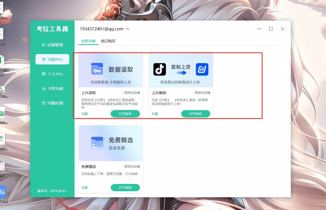 考拉工具箱,经过开发者精心打造,是一款以抖音小店上货为主要功能的智能软件。它成功率高达98%以上, 无需小号和插件,让你省时省力,轻松上货。 而无论是对于初入抖音商业生态的新手,还是老到的行业狼,考 拉工具箱都是您不可或缺的得力助手。