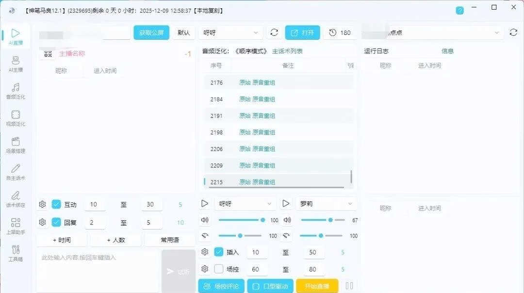 1. 无人值守自动带货:24小时不停歇 你知道吗?很多商家都遇到过这样的问题:白天忙于其他工作,晚上才有时间直播,但效果却差强人意。而神笔马良AI可以实现全天候无人值守直播,无论是深夜还是凌晨,都能正常运行。
