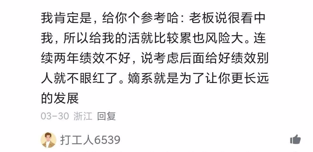 网友都调侃说,既然能问出这个问题,说明你已经没机会了。还有“嫡系”直接现身说法:要成为“嫡系”,得先苦后甜。前两年活又累又不出成果,绩效低,这样之后再给你好项目,别人也不眼红了。(能熬过前2年的压榨,还不跑,说明离“嫡系”不远了)