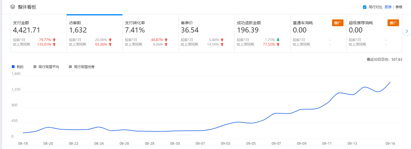 曾经刷过的那些小号做好记录,再刷回头客,这样大概重复3周的时间,新品日访客从0到1500左右,算是一个小爆款吧!