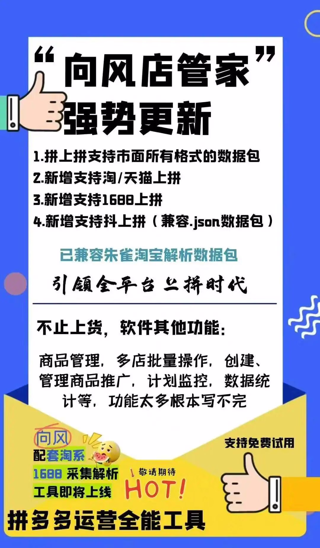 说实话,我曾经也是一位电商从业者,深知多平台运营的苦衷。每天需要在不同的平台之间来回切换,重复上传商品信息和图片,既耗时又容易出错。后来,我发现了一个秘密武器——向风店管家。