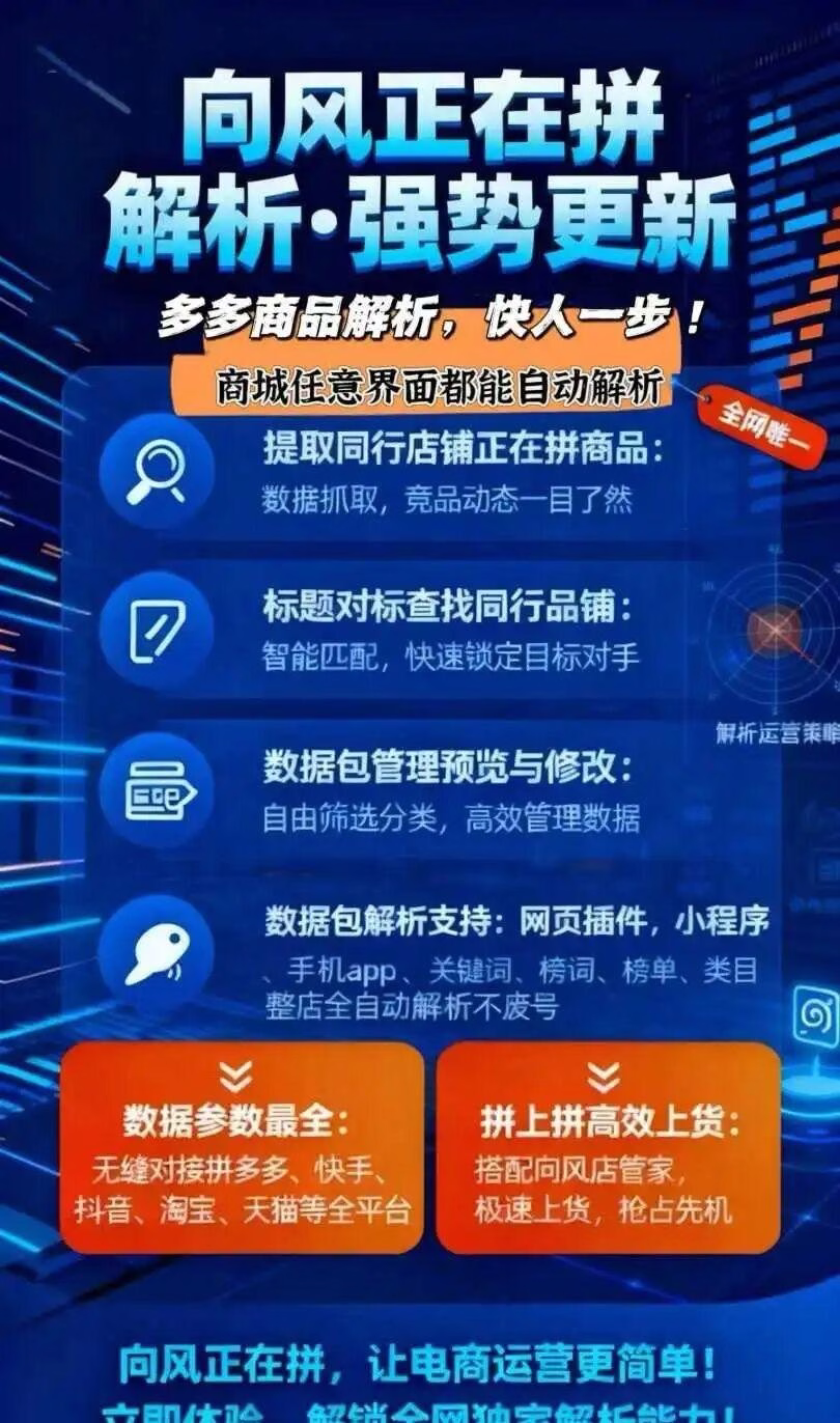 通过向风正在拼,商家不仅能够快速找到适合自己的爆款商品,还能在拼多多市场中占据先机。它不仅仅是一款工具,更是你在电商战场上的一位得力助手。
