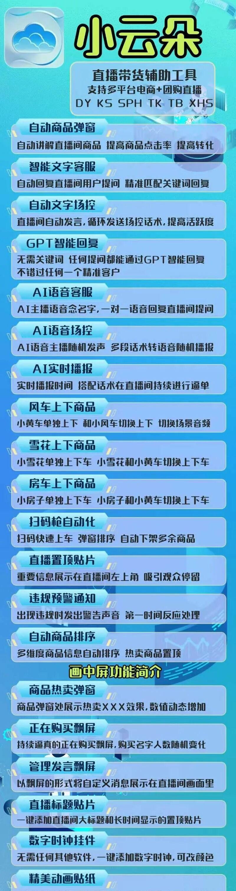 这些功能真的让我觉得,小云朵不仅仅是一个工具,更像是一个全能的助手,随时准备帮助你应对各种复杂的带货场景。