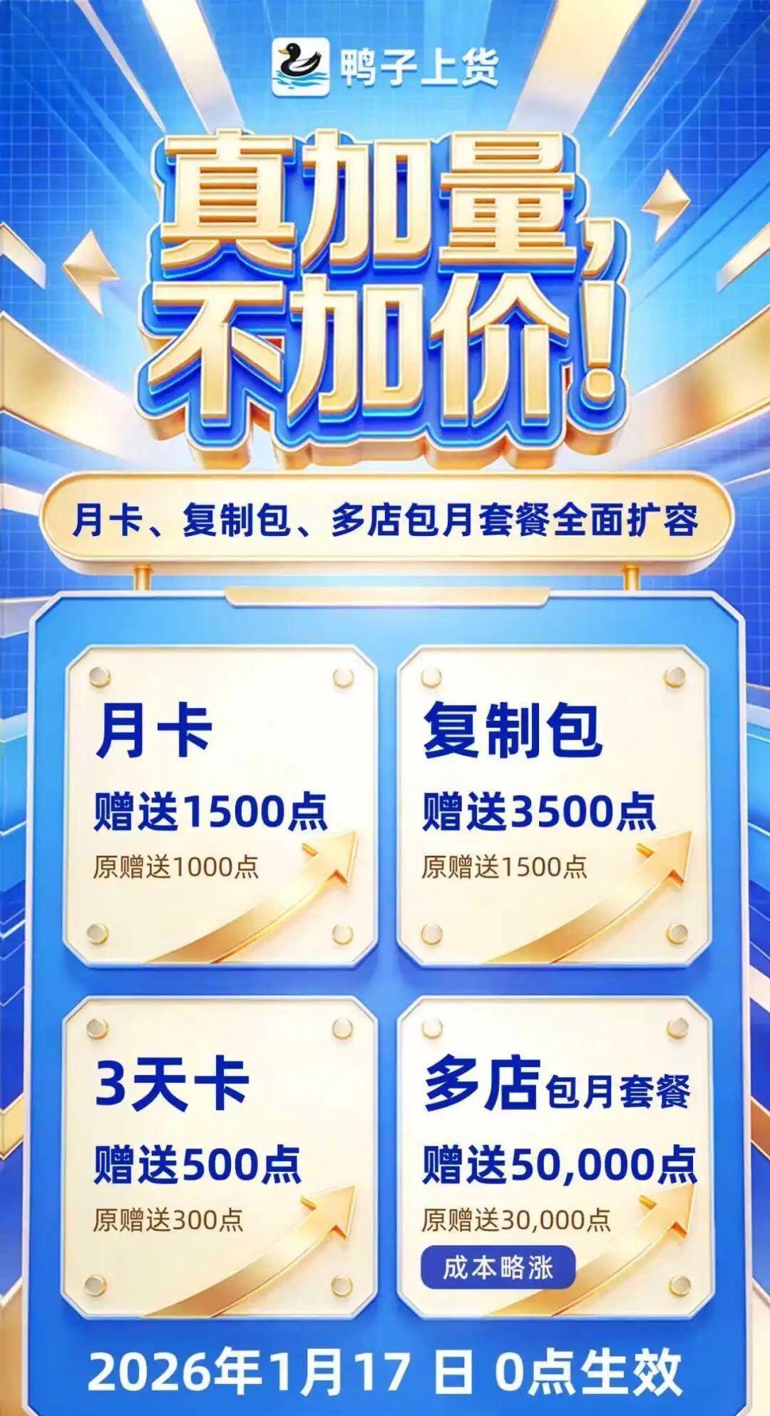 为了让更多商家享受到升级后的服务,鸭子上货还对套餐进行了全面扩容!