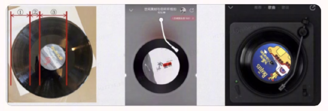 网易云音乐经典的黑胶唱片播放界面,歌曲播放时胶片旋转的设计也被QQ音乐“借鉴”。